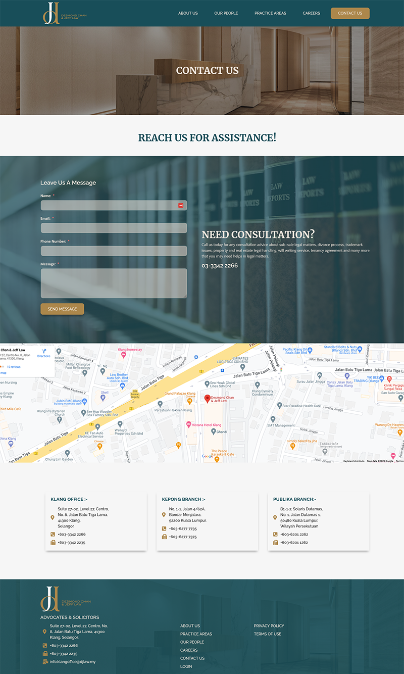 Desmond Chan & Jeff Law, a law firm based in Malaysia. The firm specializes in a range of legal services, including corporate and commercial law, intellectual property law, and dispute resolution. The website features a clean and professional design, with easy navigation and clear information about the firm’s services, team, and experience.